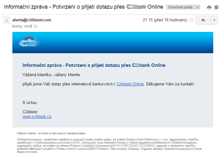 Co nám tato zpráva vlastně říká? Pouze to, že nám dnes v 21:15 potvrdili přijetí dotazu, o kterém z notifikace nevíme vůbec nic. Pokud dotazů bude více, jsou tyto notifikace spíše na obtíž. Jaký je pak smysl těchto notifikací?