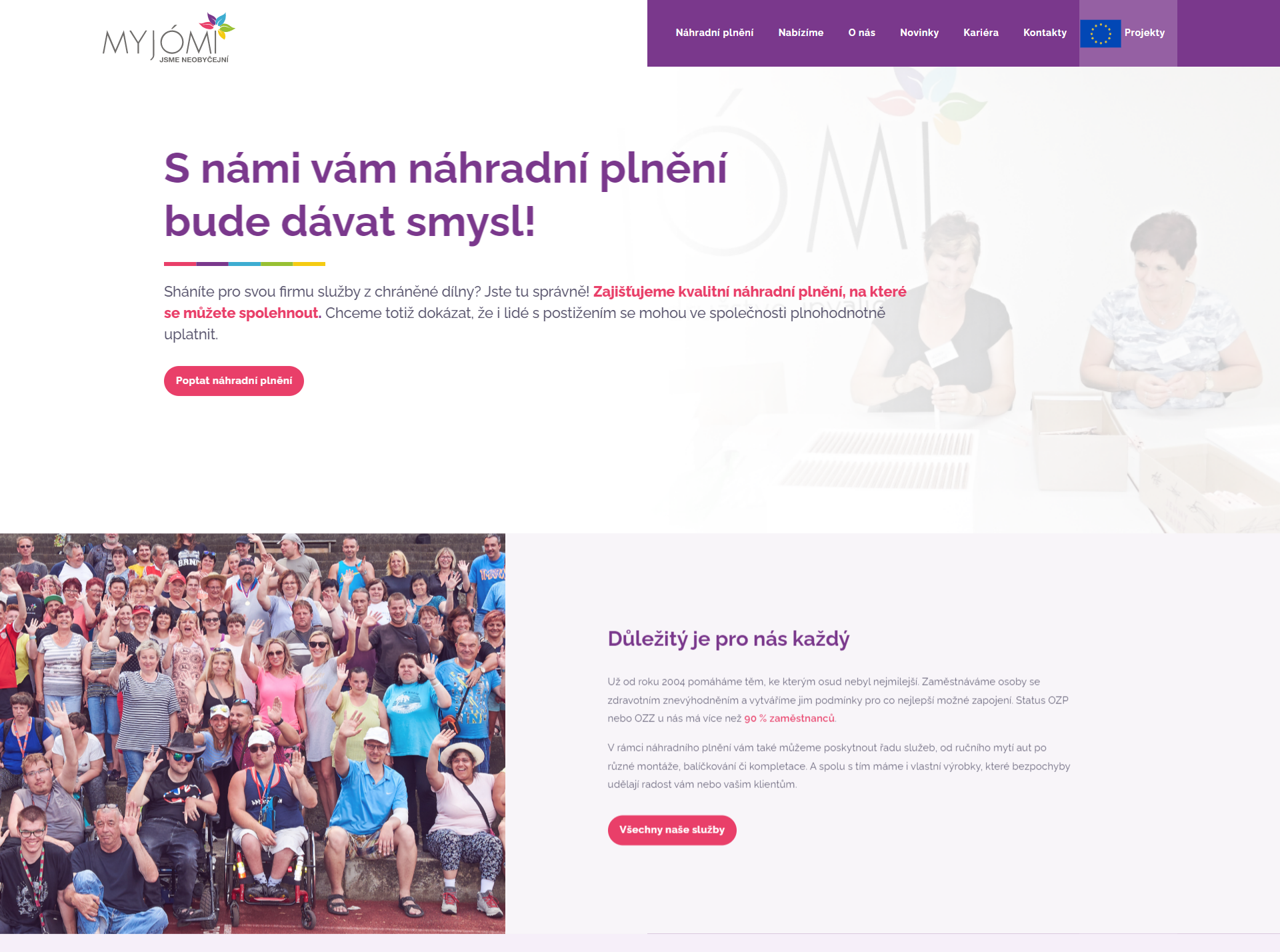 Přehlednější obsah či uživatelské prostředí, ale například i více možností oslovení firmy ze strany nových zákazníků nabízí nový web MYJÓMI družstva invalidů. Zájemci ho najdou na stejné adrese, jíž je www.myjomi.cz. Firmu s pobočkami v devíti městech republiky od letošního roku znají už i pražští zákazníci, a to zejména prostřednictvím služeb ruční automyčky ve Vinohradské ulici. Vzhledem k tomu, že MYJÓMI coby sociální podnik zaměstnává kolem 95 procent zdravotně hendikepovaných osob, může svým zákazníkům nabídnout služby formou náhradního plnění, což současně patří i k jeho největším bonusům. Nový web si klade za cíl, aby nejenom na první pohled upoutal pozornost nových zákazníků, ale také zjednodušil první komunikaci mezi jimi a družstvem. Tak, aby zájemcům bylo hned jasné, ze sociální podnik jim může v režimu náhradního plnění nabídnout nejenom služby myčky, ale třeba i montážní, balicí, kompletační či kontrolní práce včetně výroby originálních produktů v šicích nebo pletací dílně.